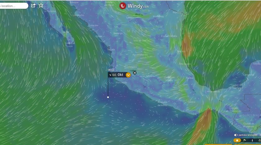 I like the GUI and data presentation of Windyty.com, so all the maps I show are from them and when I do look at weather, I look at them before anything else. This is what a great case looks like. How long it will last? Not long enough, but a few days, then with a low pressure system developing further west, would give me favorable winds for the second of two 3-day periods (the steaming distance between Huatulco and Cabo San Lucas is 900 nm or 6 days.