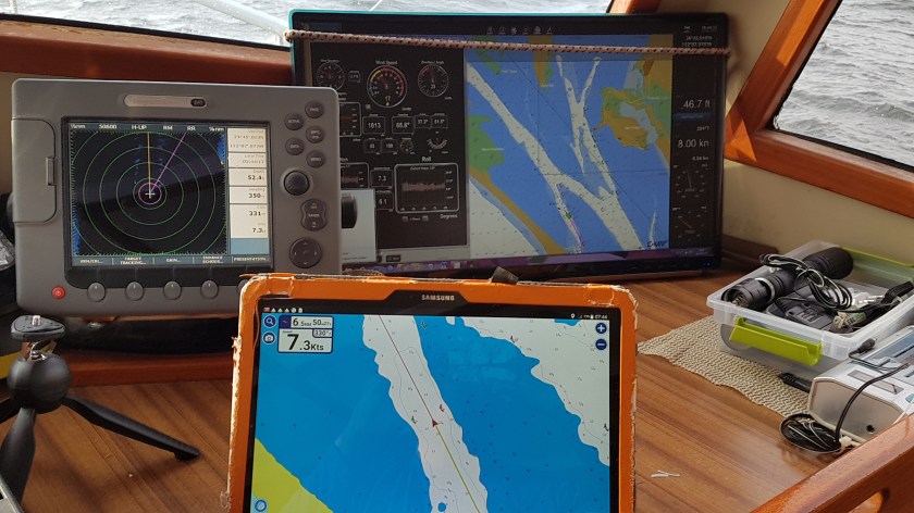 We did swing around overnight due to the current, but my 55-pound Delta anchor has never dragged since I got it 4 years ago. I don’t even bother with an anchor alarm anymore, but I admit that’s because I have given up on Drag Queen probably because it turns itself off due to poor reception in my cabin and more importantly, I don’t anchor off lee shores.