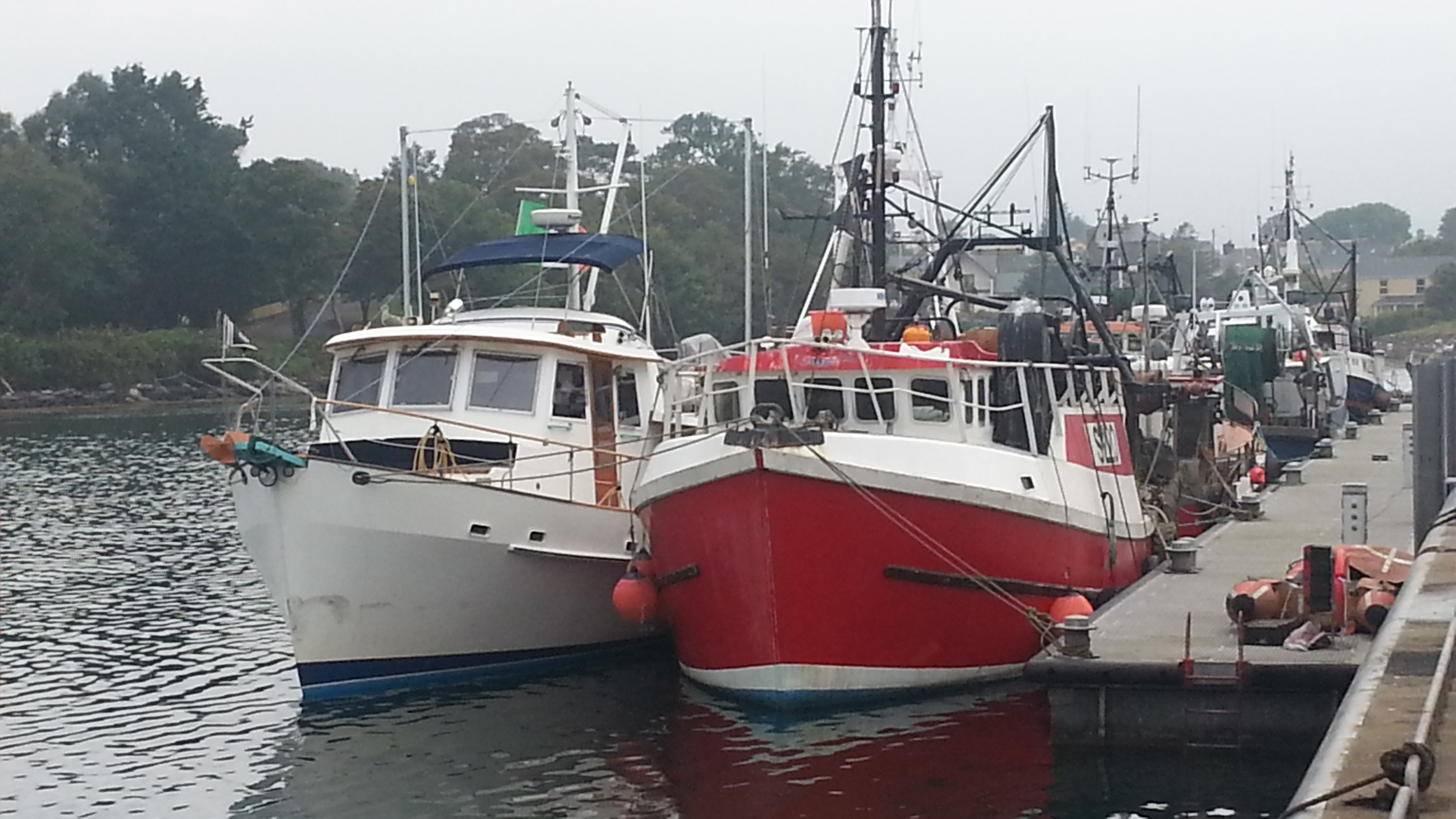 Dauntless in Ireland, next to a fishing boat with almost the exact same lines. There is a reason she handles the North Atlantic like she was born there.