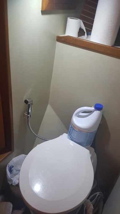 As I said, Ole is a real Sea Dog, unlike me, who is just a neophyte in comparison. But the rolling took its toll, and the initial problem was unseen for hours. By the time, Olé did find the problem, it was a real mess.