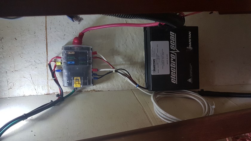 Yesterday, I completed two things on the nice to do list: replacement of the Raritan water heater anode and replacement of a terminal block for my 120-volt neutral circuits in the engine room distribution panel.