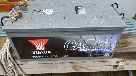 Batteries. My four Yuasa 8D Sealed Lead Acid batteries, bought in Ireland 4 years ago, are shot. Each battery is 225 amp-hours (AH) but are down to about 10 AH each! That means that once 40 AH are out of the entire bank, the voltage crashes to under 11 volts.