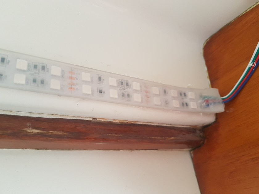 Confidence is the other side of the equation. When I finally completed the LED project, which involved 4 wires, with four conductors each (a positive, and 3 separate grounds that control the three colors, blue, red and green), I was very pleased to see it all worked as anticipated. I had three switches to turn each respective set on or off, plus three additional switches to control the colors, since I figured I didn’t need any complicated controller.