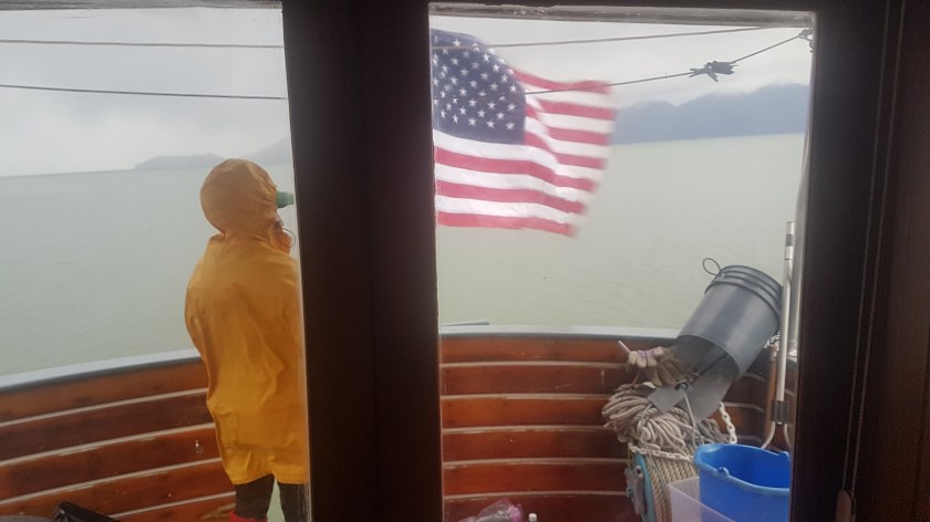 So, while water was not a problem, it still took some time to disconnect the frozen hose and put it away. Then, we spent 20 minutes trying to get the frozen lines off the boat. By then everyone was cold and miserable; at least I was. But Tee and Thien get excited about fishing, so our 2-and-a-half-hour cruise to Mahan Bay, on the east side of Wrangell Island, went pretty quickly.