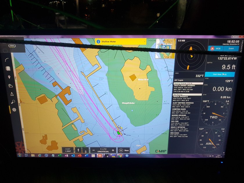 Our track having left the 2nd shrimp pot, the crab pot and now anchored